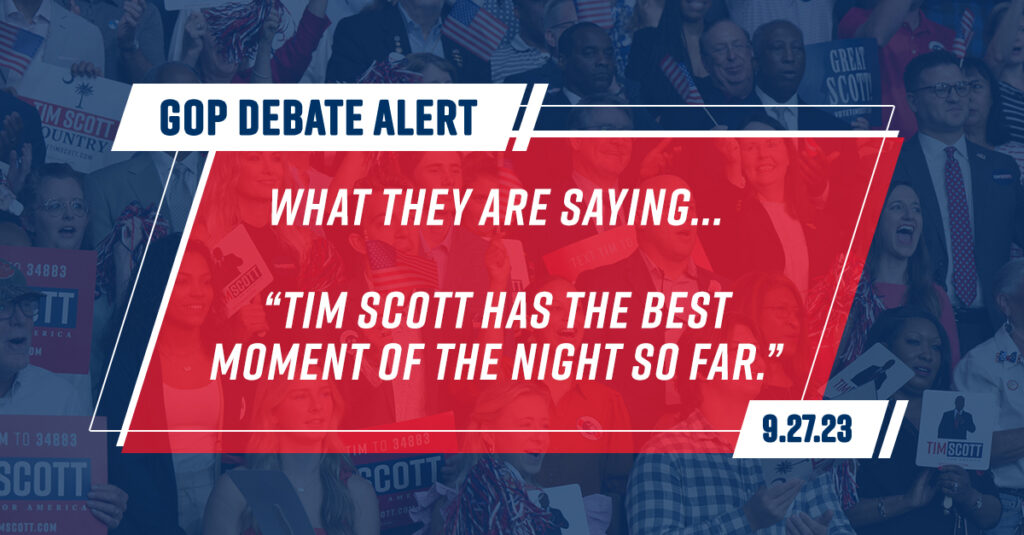 What they are saying… “Tim Scott has the best moment of the night so far.” Wall Street Journal: Tim Scott Is Finding His Voice This Time ###